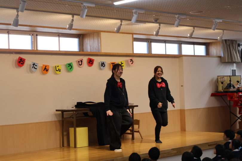 令和生まれの子どもたちにはコミカルな曲や動きが新鮮で、繰り広げられるマジックにも目が釘付け。マジックでケーキも出てきて大盛り上がり楽しくお祝いをしました。